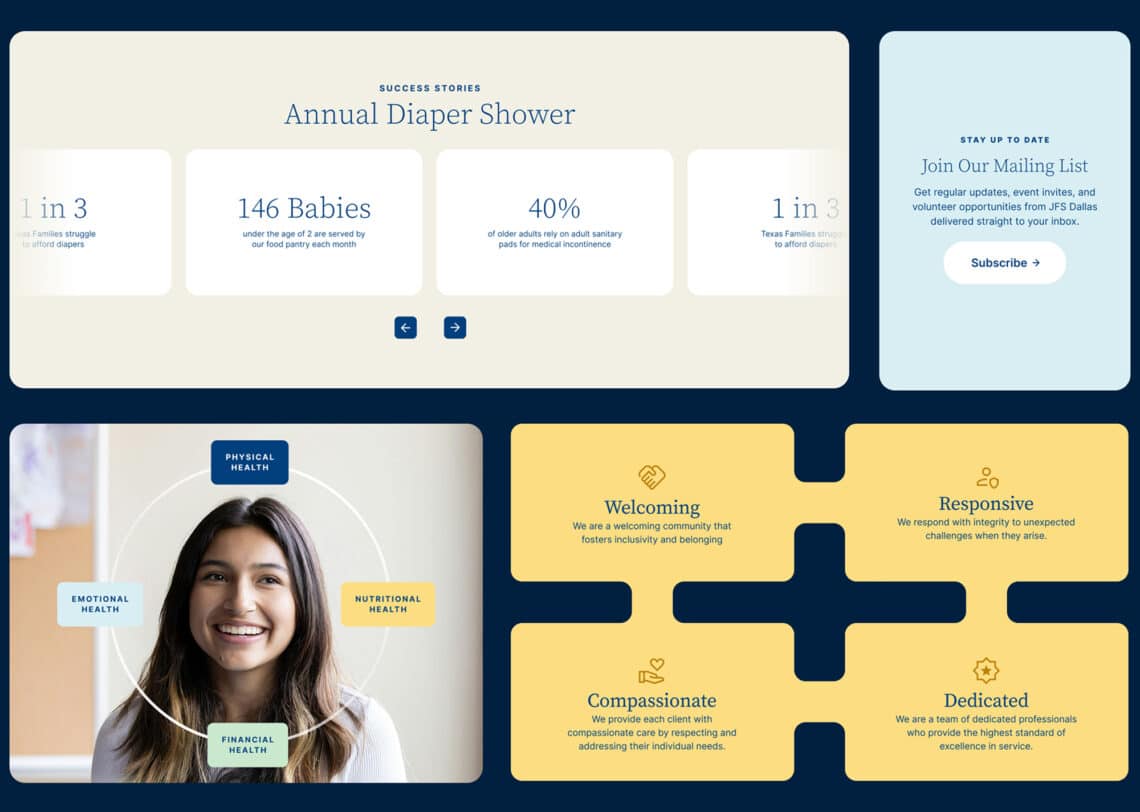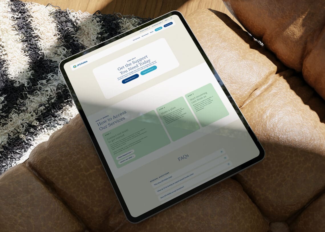 Jewish Family Service of Greater Dallas partnered with Tegan Digital to reestablish its presence within the Dallas Jewish community and the broader local audience through a website redesign. The work focused on reflecting JFS’s mission to provide accessible care and highlighting its role in the community. Together, the teams aligned on a strategy to better communicate JFS’s programs, services, and impact while positioning the organization as a trusted resource for individuals and families.